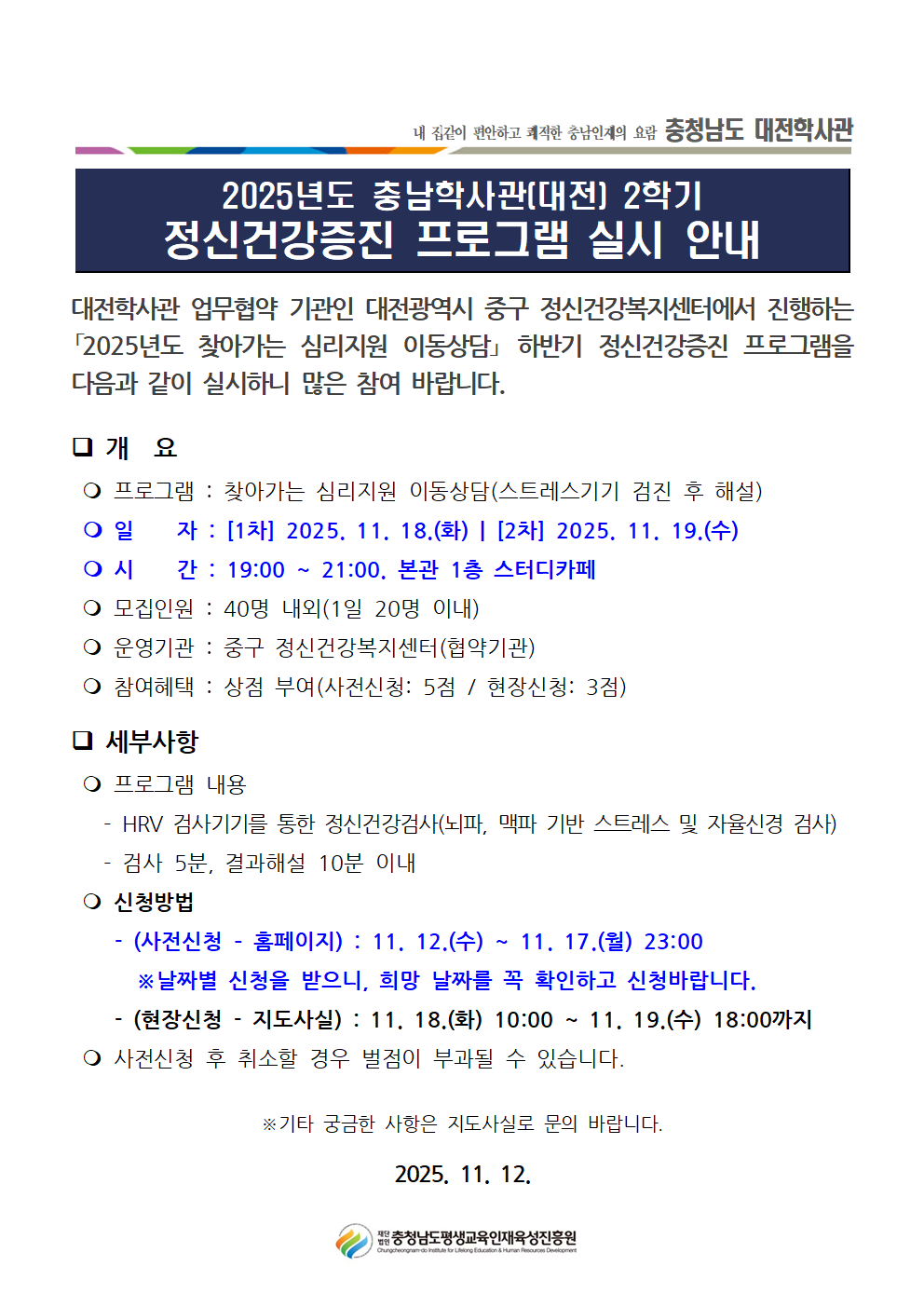 2025년도 충남학사관(대전) 2학기 정신건강증진 프로그램 실시 안내001.png