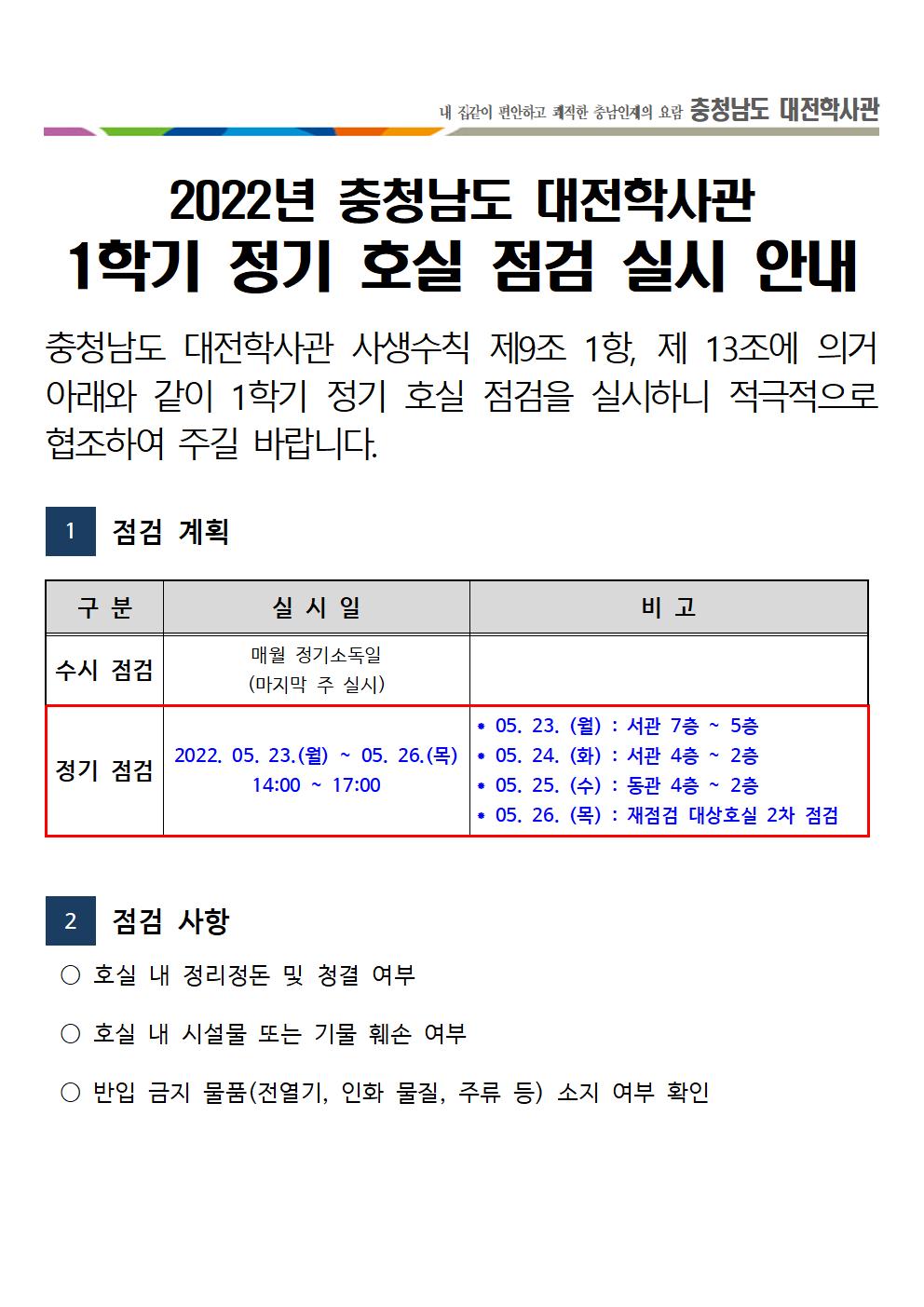 2022년 충청남도 대전학사관 1학기 정기 호실 점검 안내001.jpg