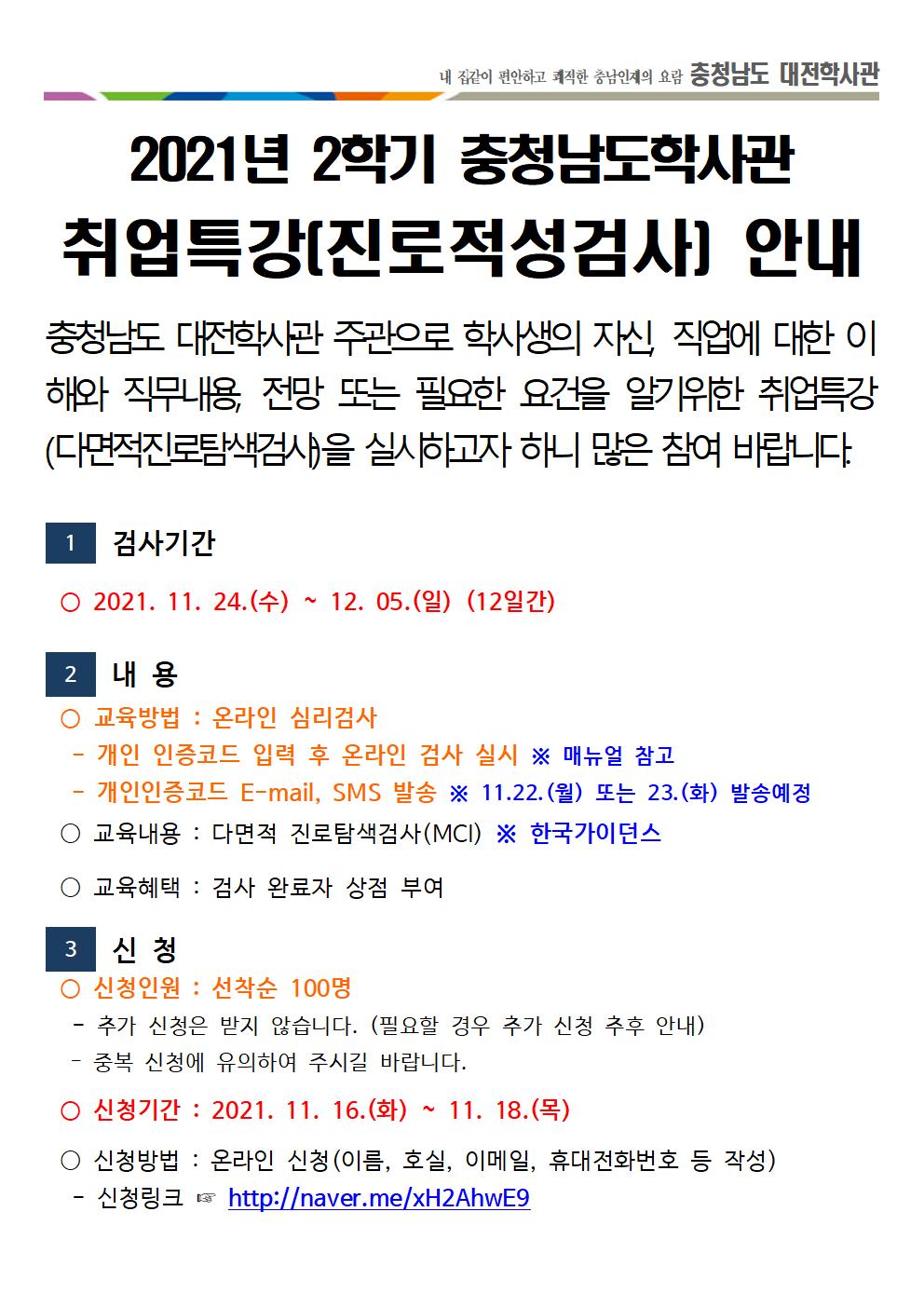 [알림]2021년 충청남도 학사관 취업특강 안내(대전학사관)