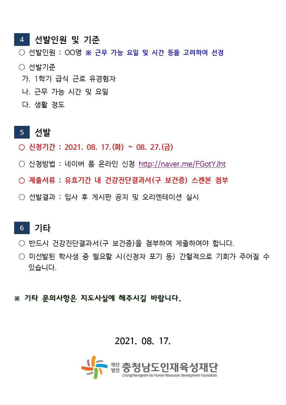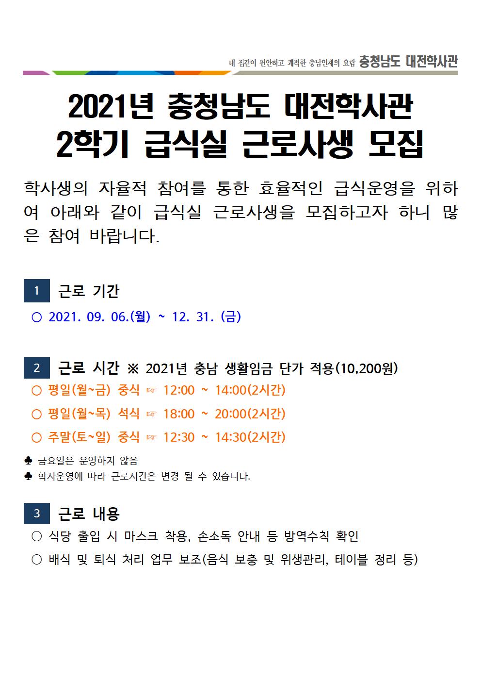 1. 2021년 충청남도 대전학사관 2학기 급식근로 모집안내001.jpg