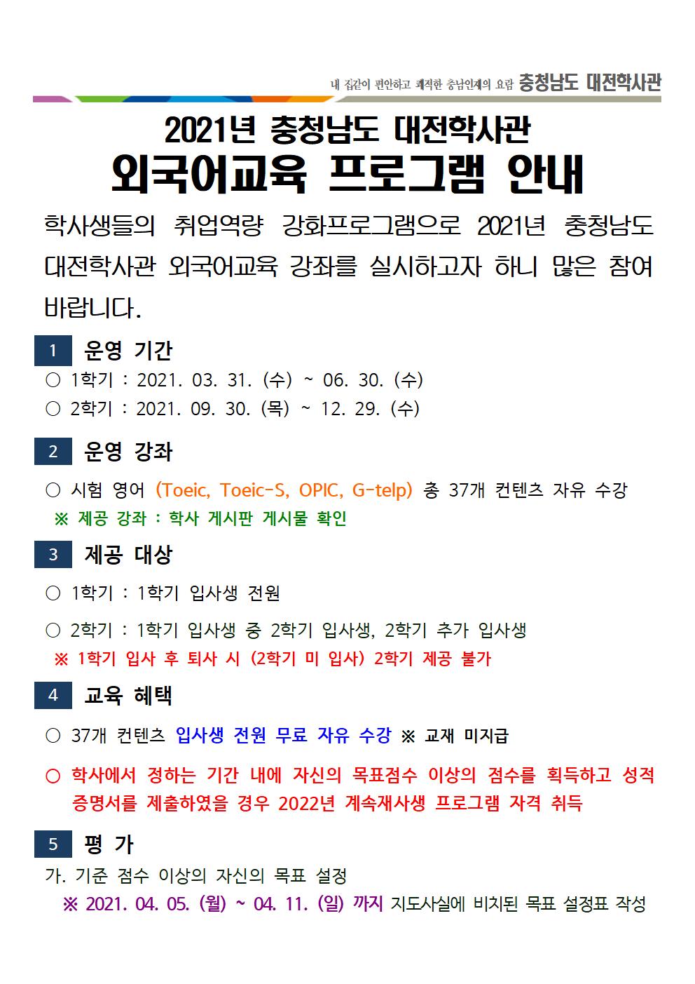 [알림] 2021년 충청남도 대전학사관 외국어 교육 프로그램 안내