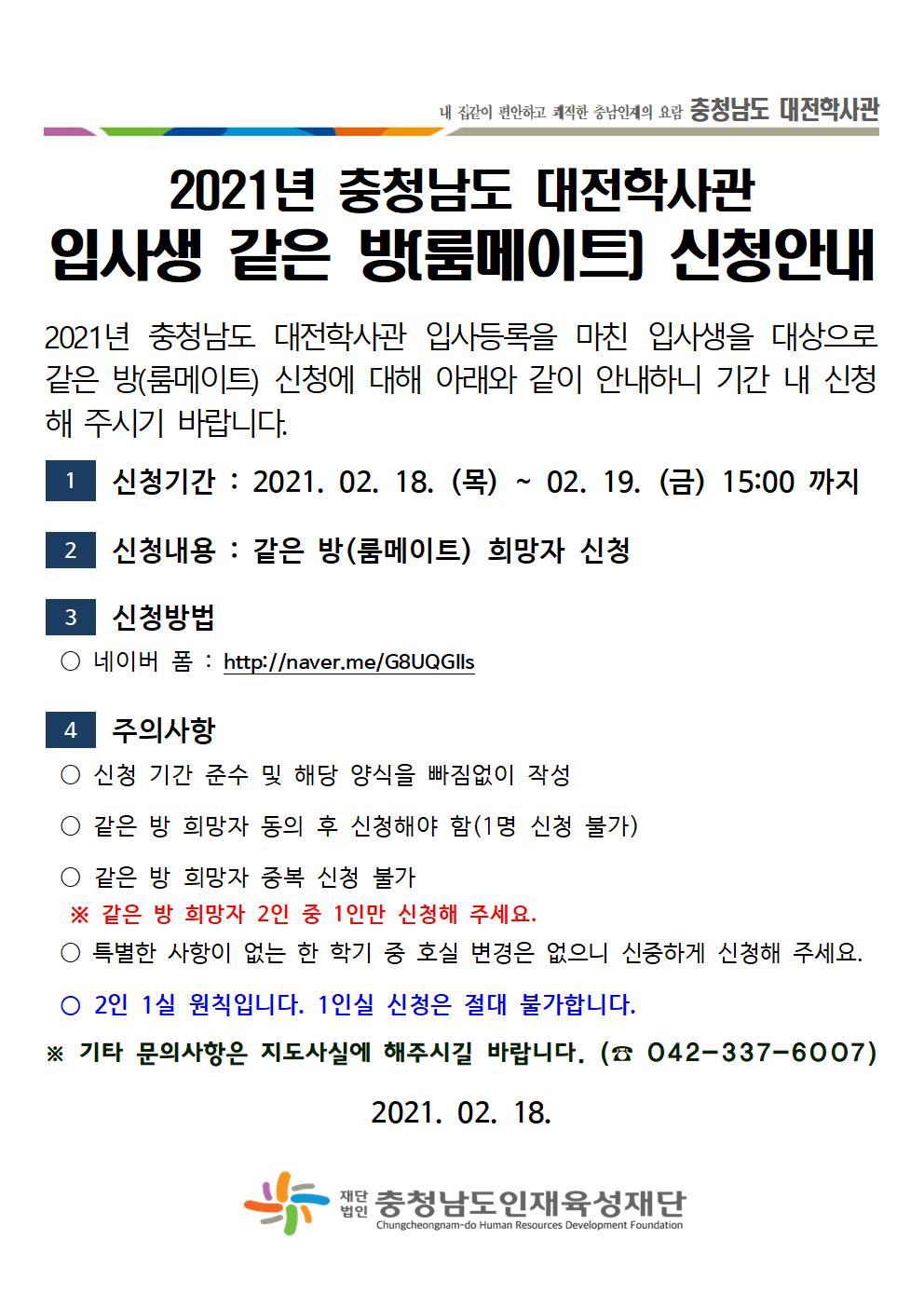 2021년 충청남도 대전학사관 입사생 같은 방(룸메이트) 신청 안내문001.jpg