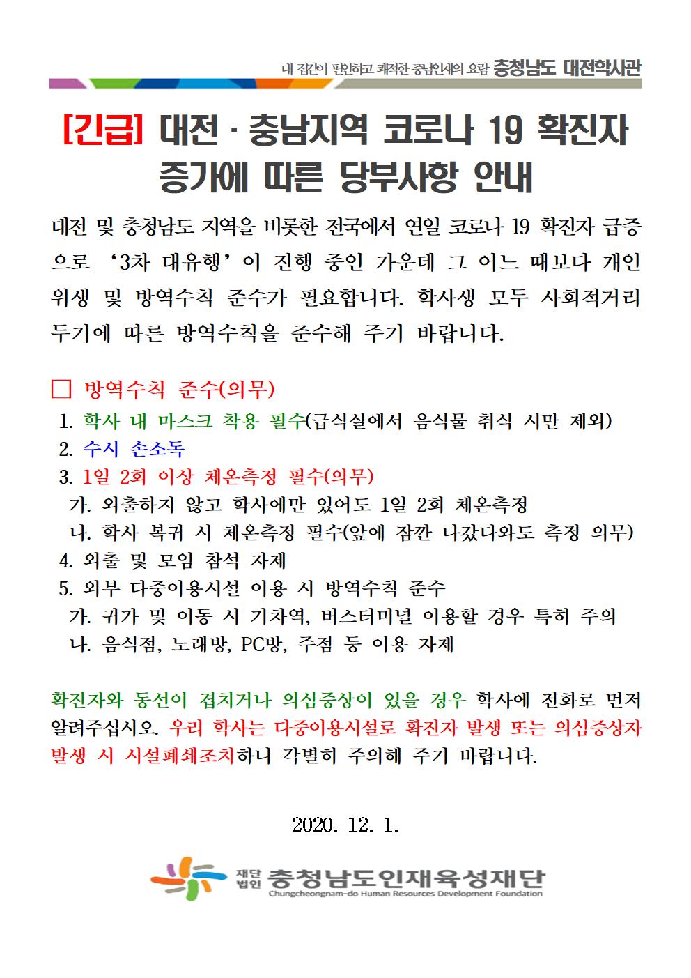 대전, 충남지역 코로나 19 확진자 증가에 따른 당부사항 안내001.jpg