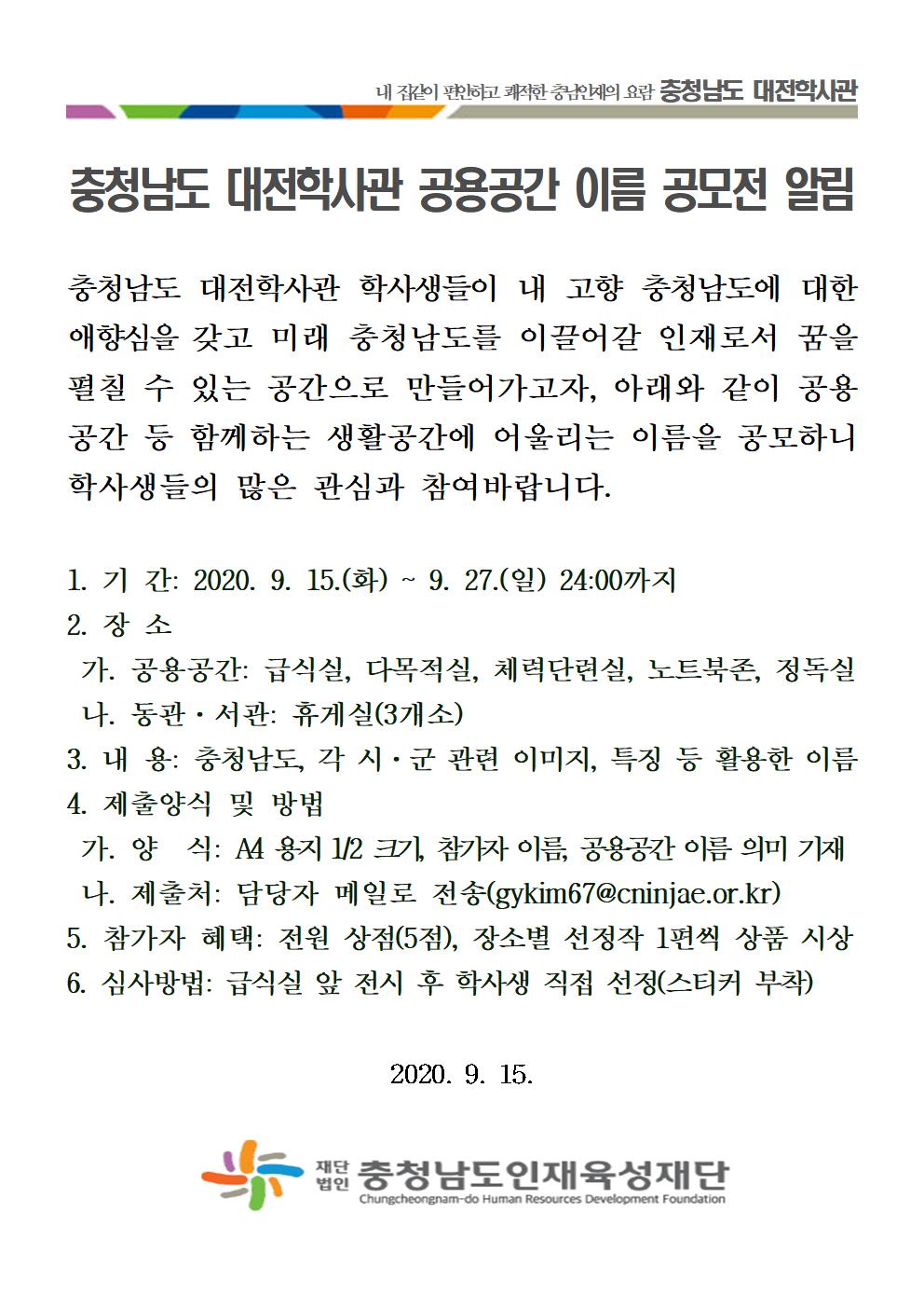 2020년 충청남도 대전학사관 공용공간 이름공모전 공고001.jpg