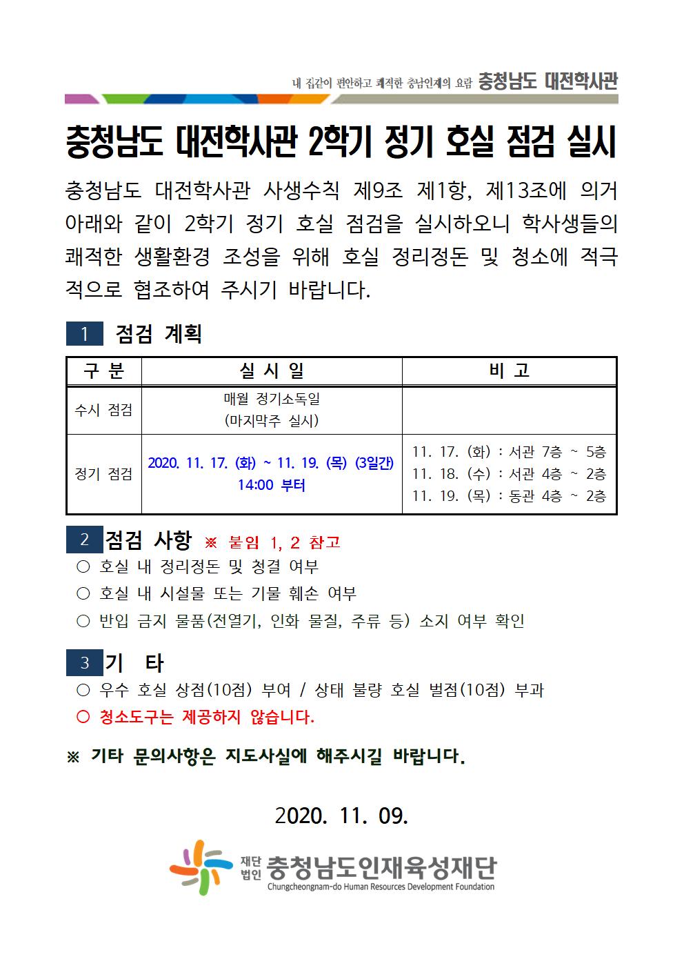 2020년 충청남도 대전학사관 2학기 정기 호실 점검 안내003.jpg