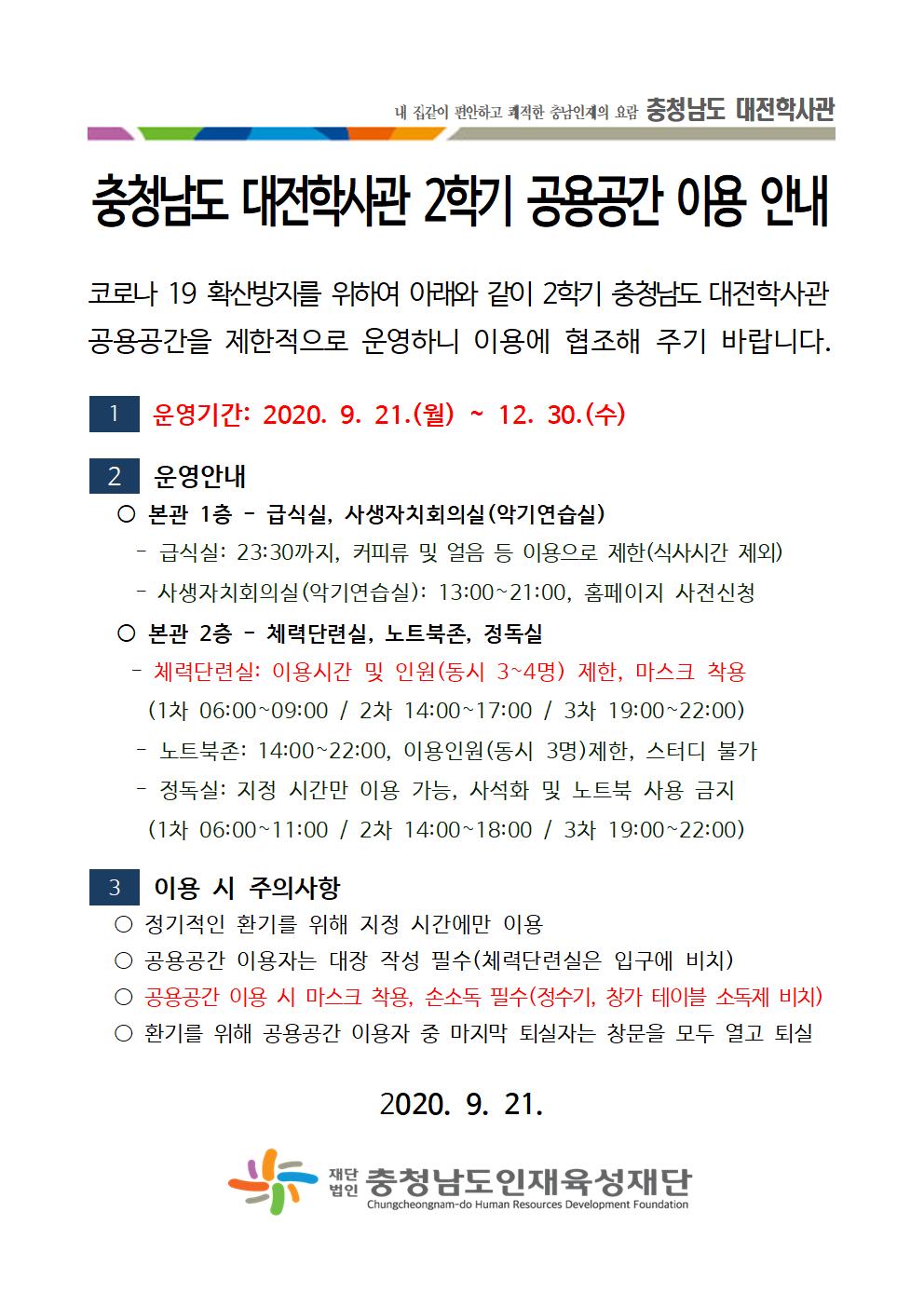 2020년 2학기 충청남도 대전학사관 공용공간 이용 안내001.jpg
