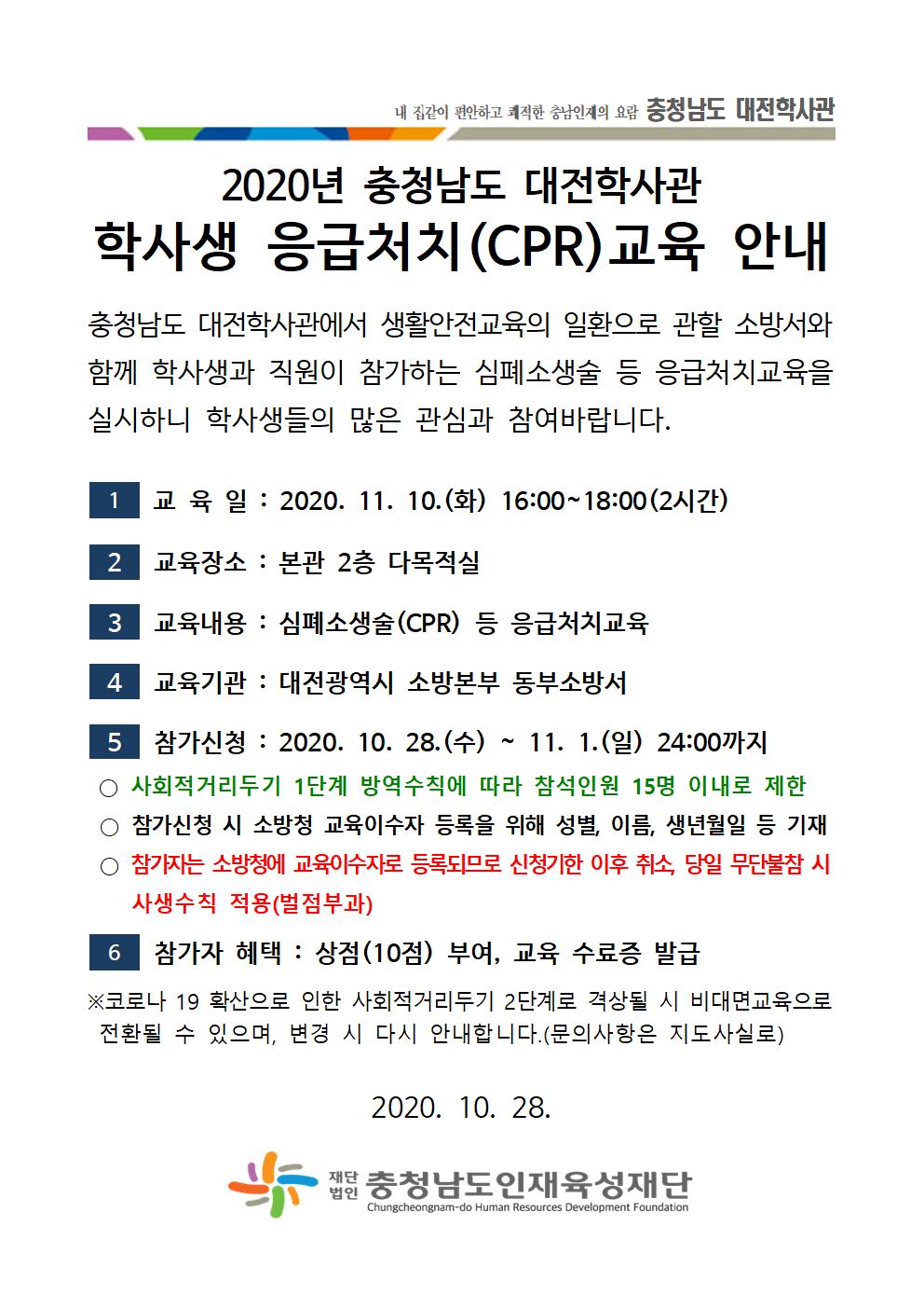 2020년 충청남도 대전학사관 학사생 응급처치(cpr)교육 안내문001.jpg