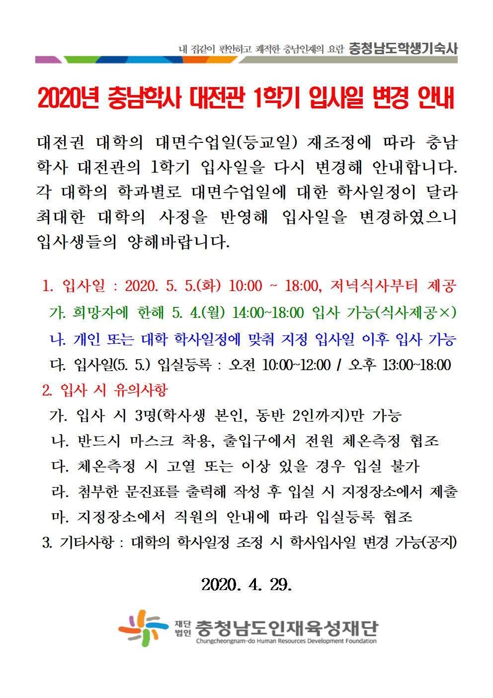 문의사항은 충남학사 대전관(042-337-6000)으로 해 주시기 바랍니다