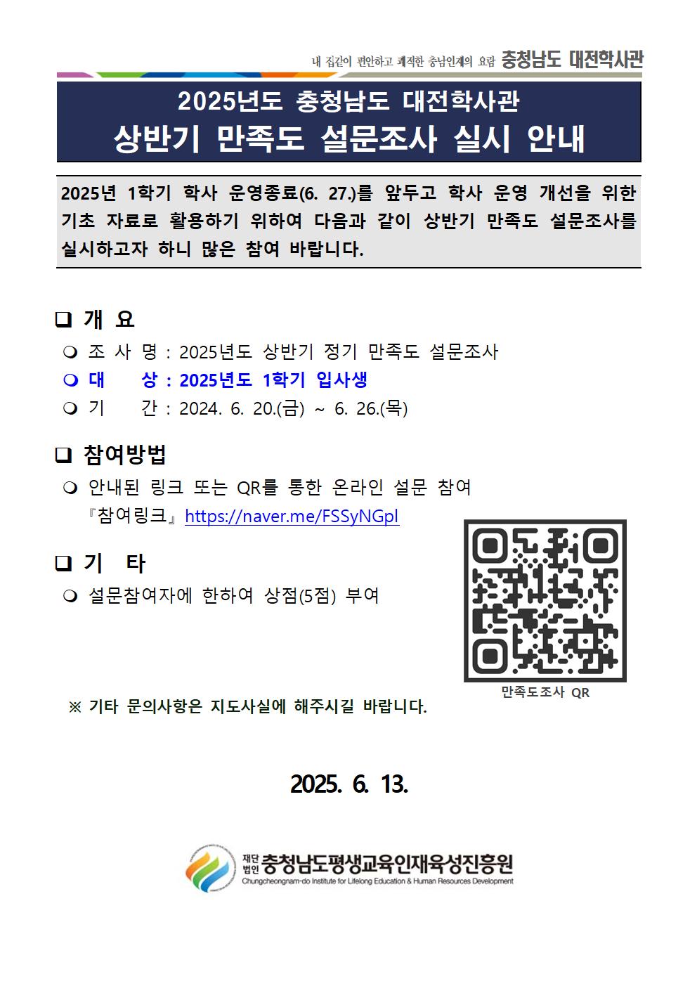 2025년도 충청남도 대전학사관 상반기 만족도 설문조사 실시 안내001.jpg