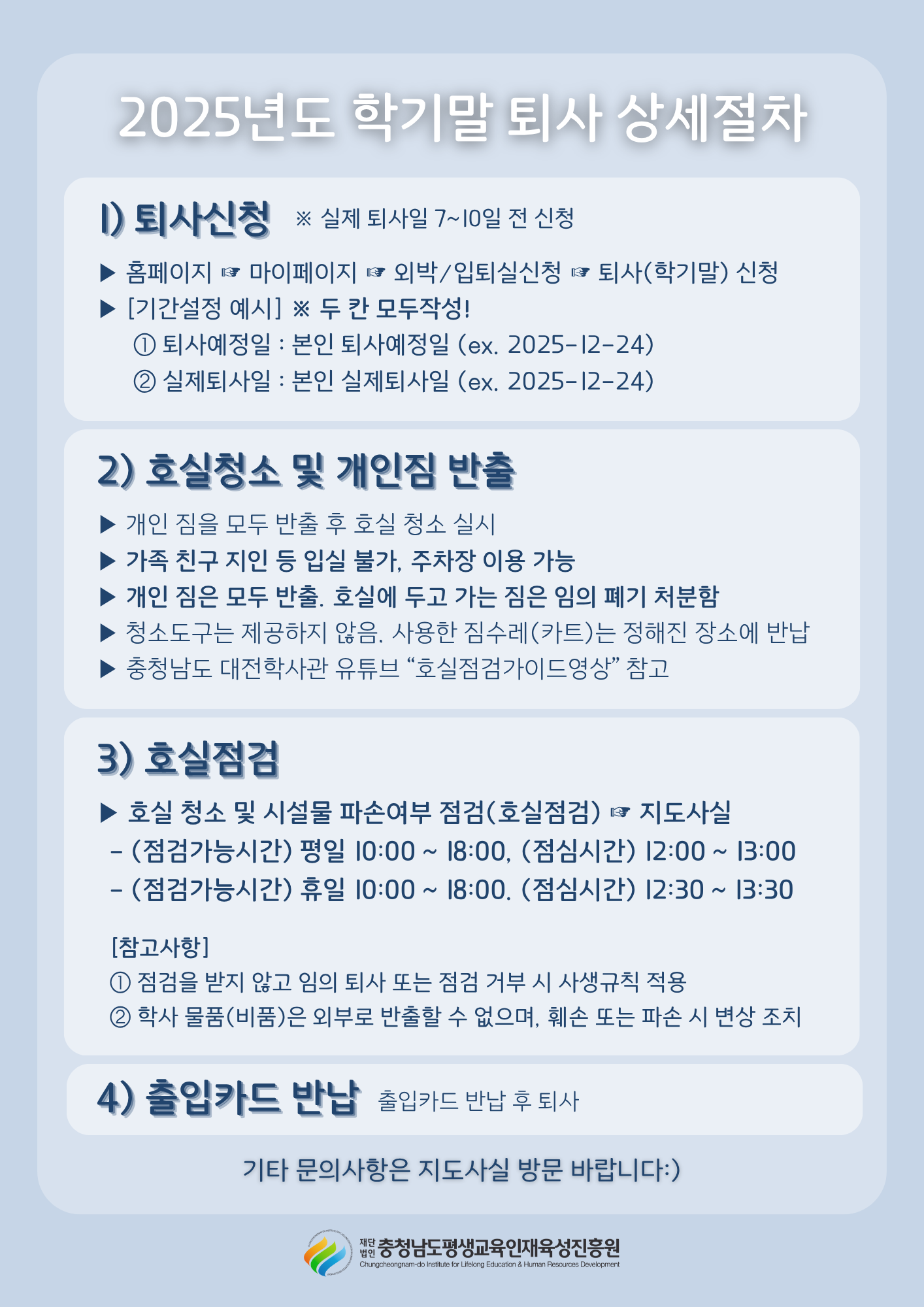 [알림] 2025년도 충남학사관(대전) 2학기 학기말 퇴사절차 안내