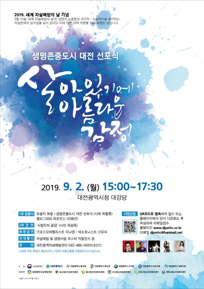 [행사 알림] 2019 세계 자살예방의 날 기념행사 및 생명존중도시 대전 선포식