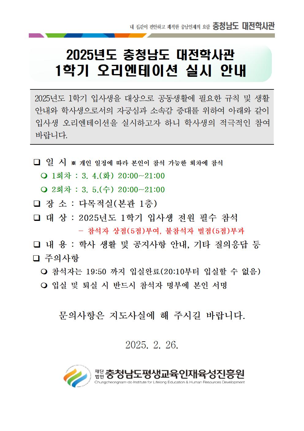 2025년도 충청남도 대전학사관 1학기 입사생 오리엔테이션 안내문001.jpg
