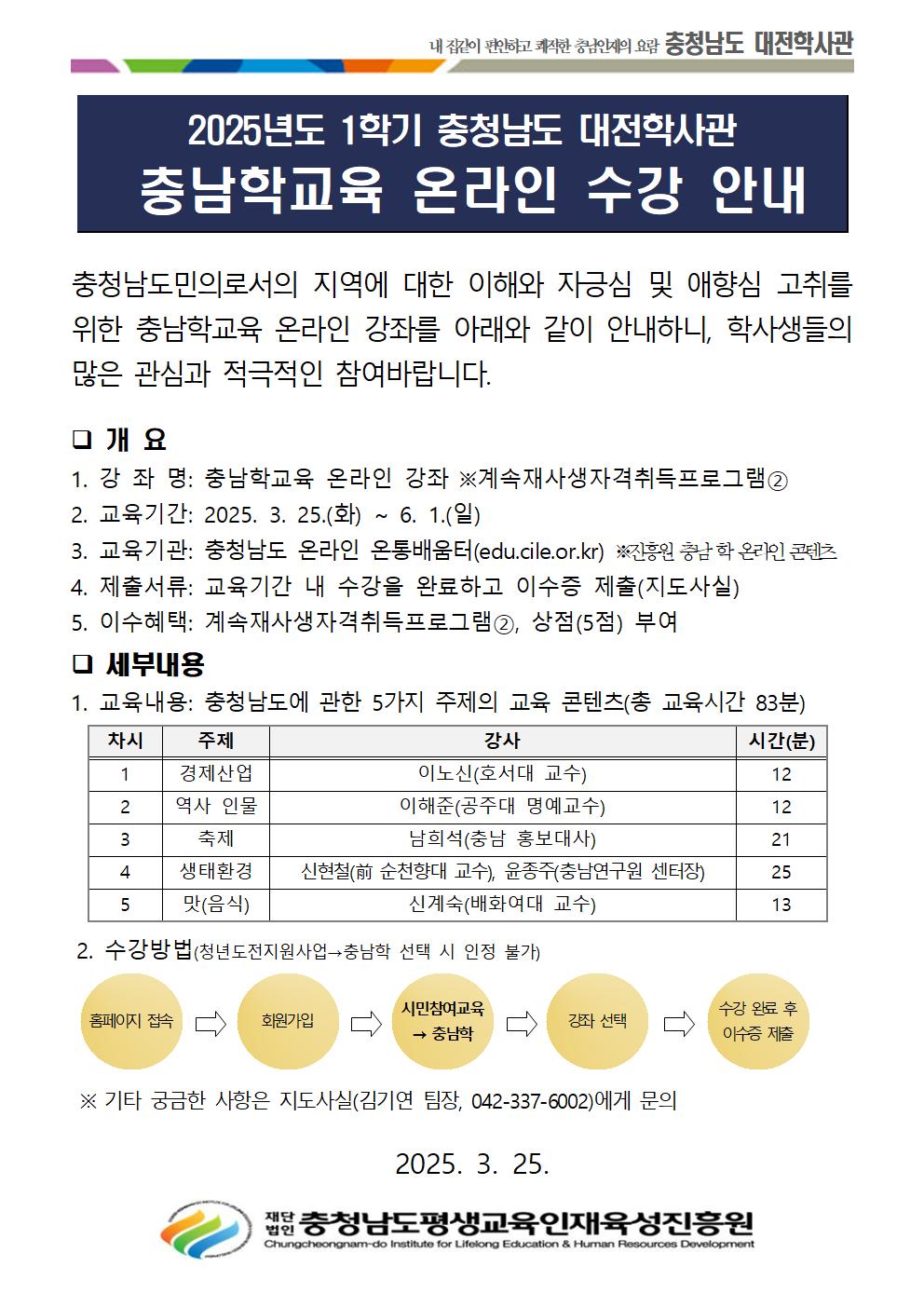 2025년도 1학기 충청남도 대전학사관 충남학교육 온라인 수강 안내001.jpg