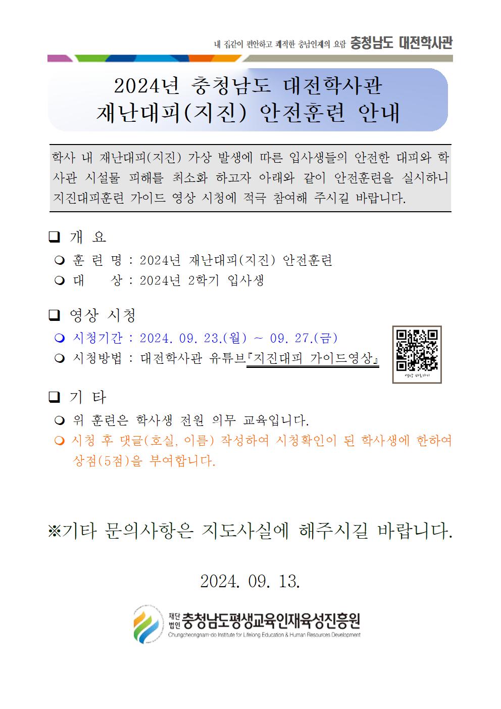 2024년 충청남도 대전학사관 재난대피(지진) 안전훈련 안내001.jpg