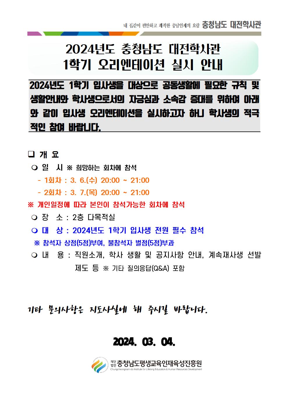 1. 2024년도 충청남도 대전학사관 1학기 입사생 오리엔테이션 안내문001.jpg