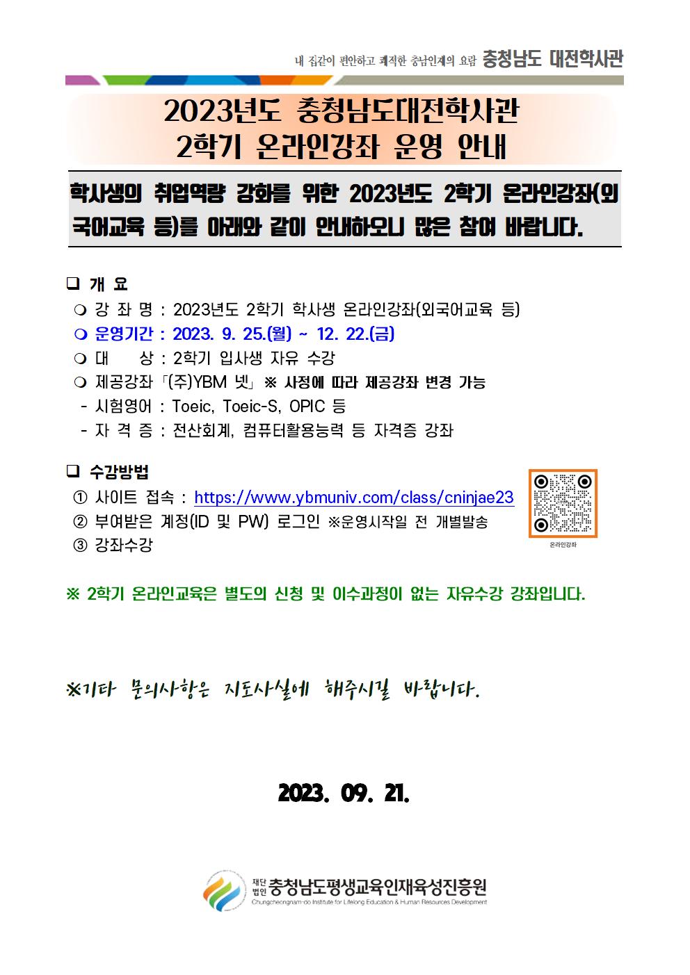 2023년도 충청남도 대전학사관 2학기 온라인강좌 안내001.jpg