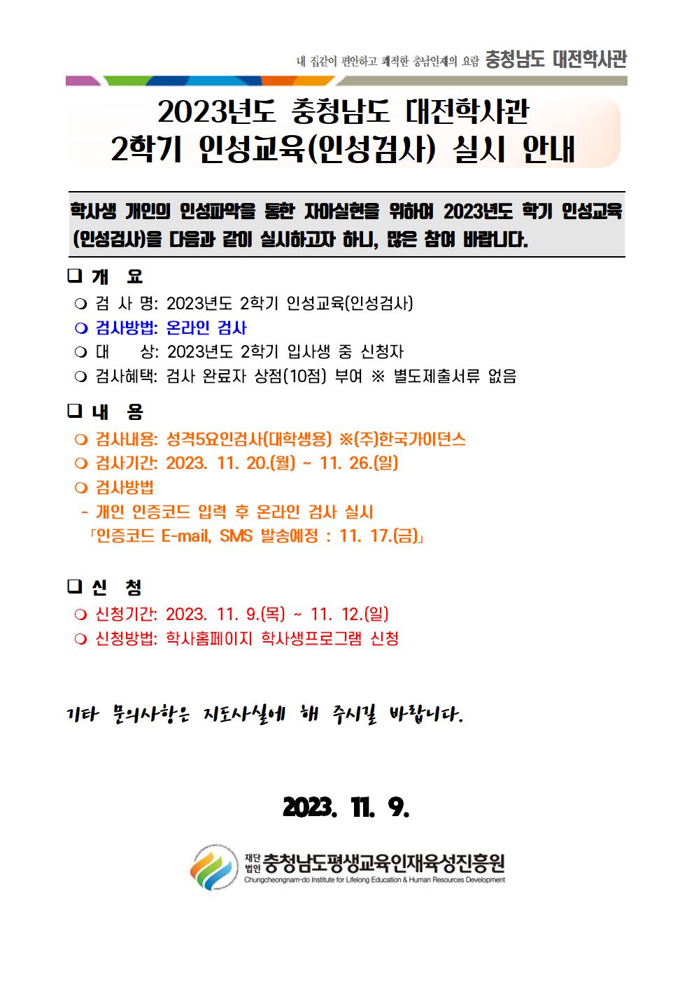 2023년도 충청남도 대전학사관 2학기 인성교육 실시 안내001.jpg