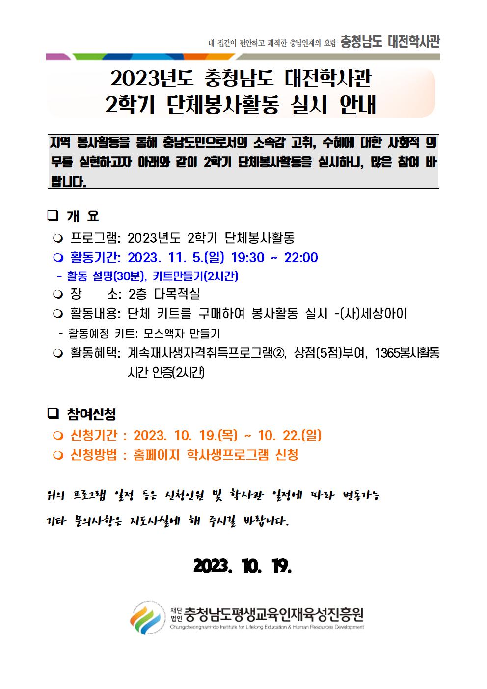2023년도 충청남도 대전학사관 2학기 단체봉사활동 안내001.jpg