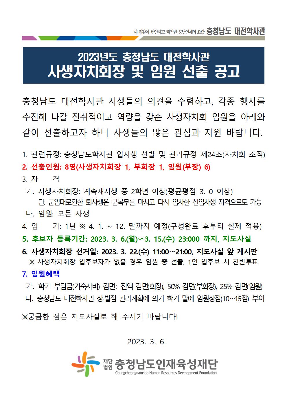 2023년도 충청남도 대전학사관 사생자치회장 및 임원 선출 공고001.jpg