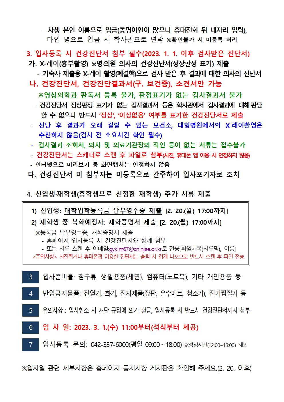 2023. 1. 1. 이후에 검사받은 결과를 건강진단서로 제출해야하며,