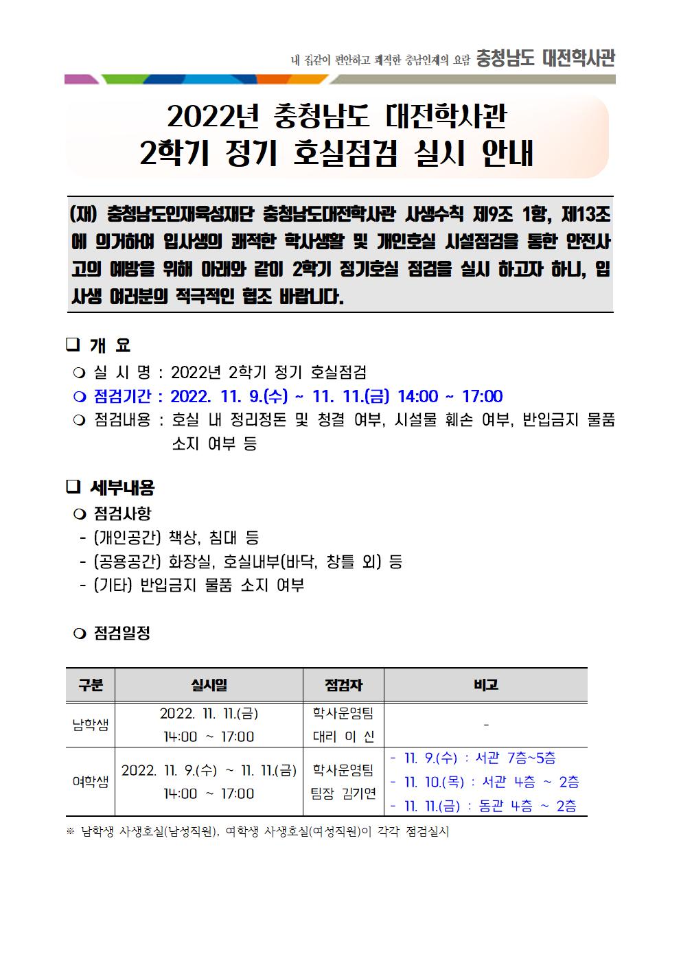 2022년 충청남도 대전학사관 2학기 정기호실점검 안내001.jpg