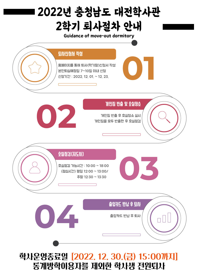 [알림] 2022년 충청남도 대전학사관 2학기 학기말 퇴사절차 안내