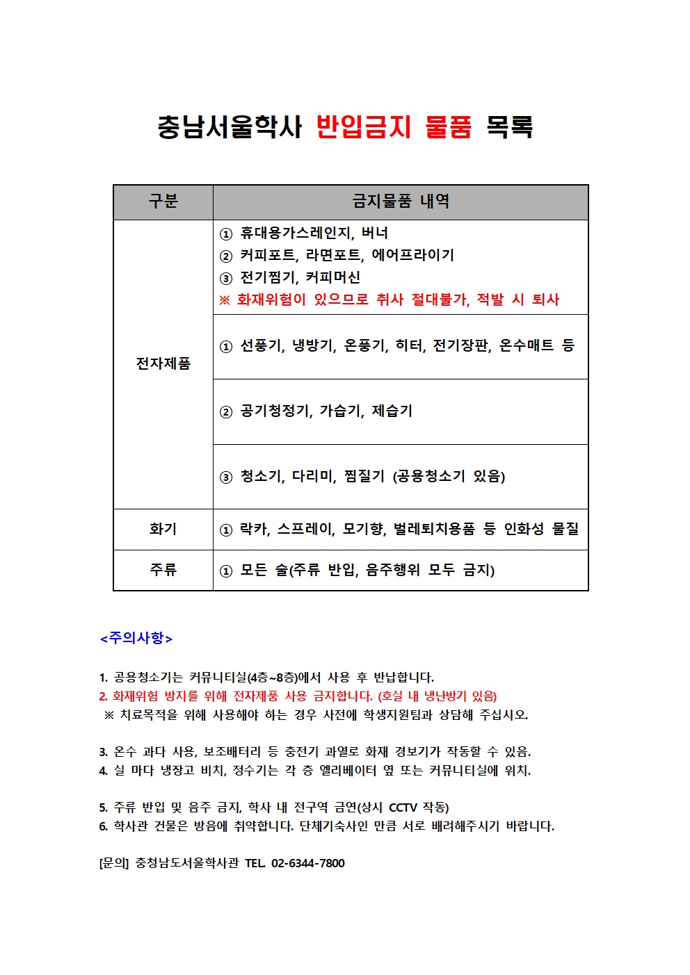 [알림] 2022년도 1학기 충청남도서울학사관 정기 호실점검 실시안내