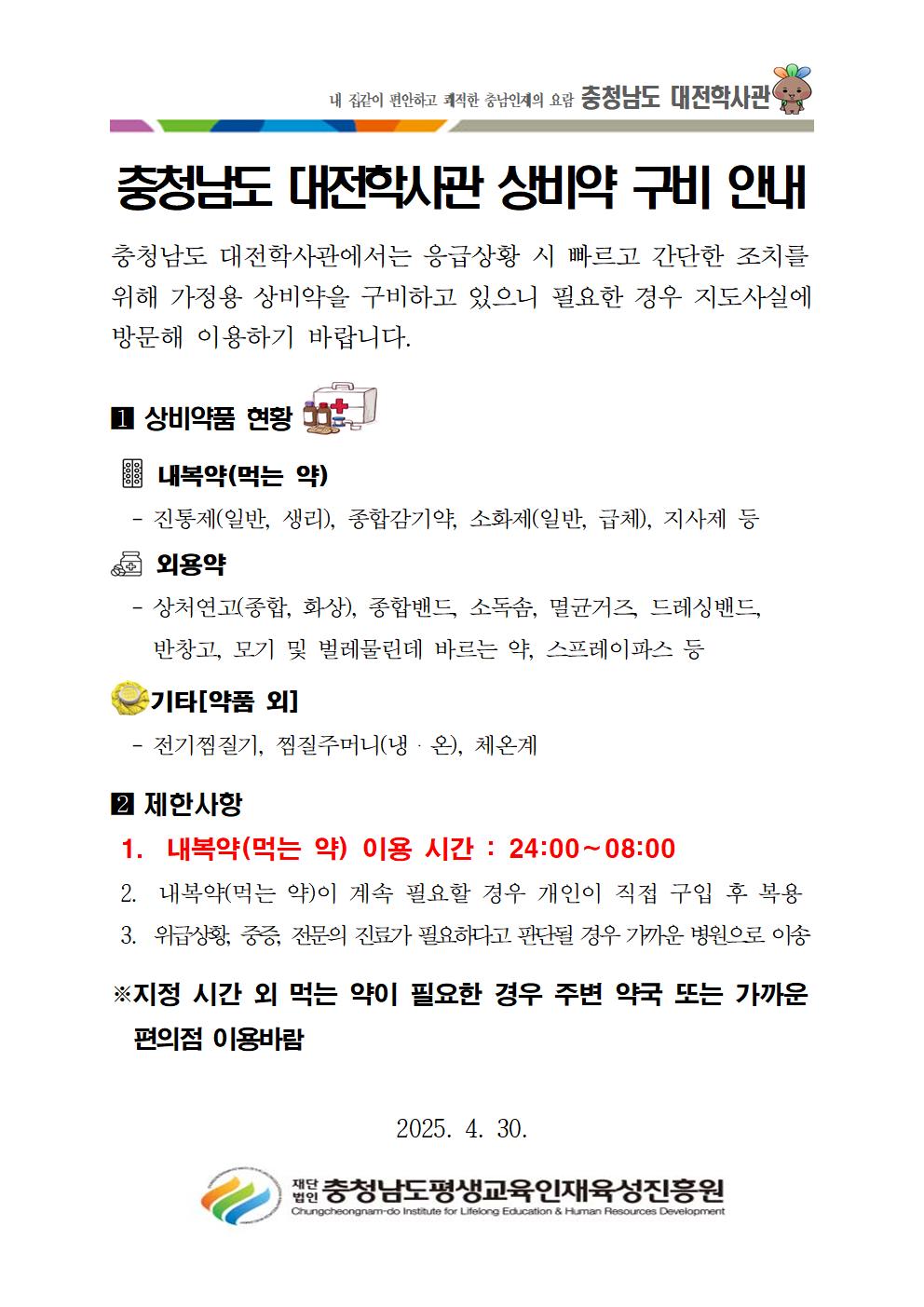 [알림] 충청남도 대전학사관 상비약 구비 안내