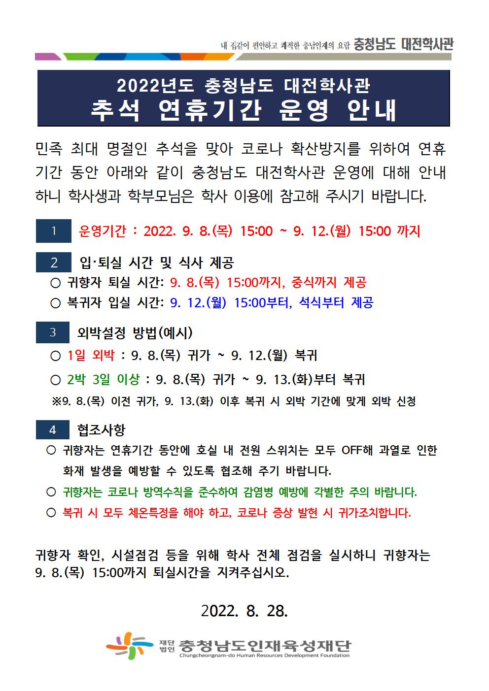 2022년도 충청남도 대전학사관 추석 연휴기간 운영 안내001.jpg