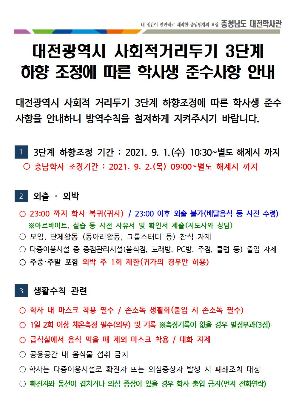 대전광역시 사회적 거리두기 하향조정에 따른 학사생 준수사항 안내(0901)002.jpg