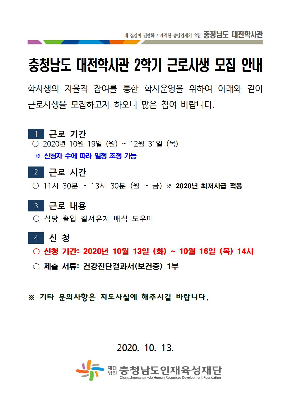 2020년 2학기 충청남도 대전학사관 근로사생 모집 안내(배식도우미)001.jpg