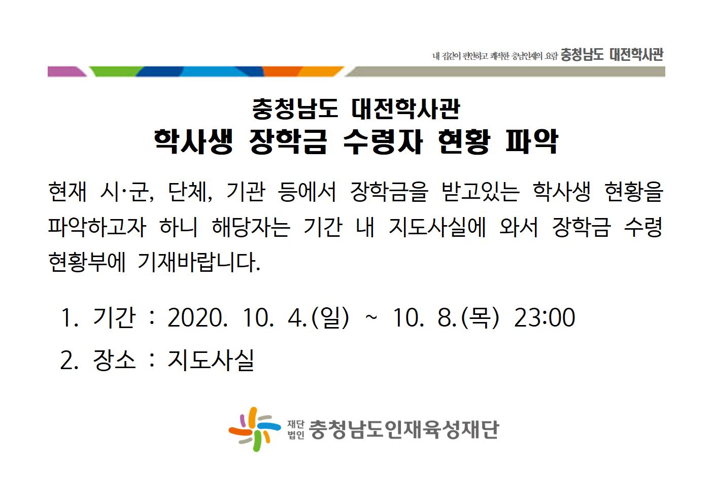 [알림] 충청남도 대전학사관 학사생 장학금 수령자 현황 파악