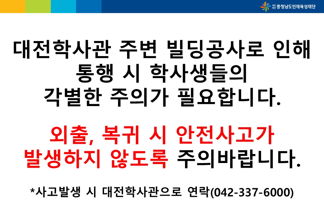 [알림] 대전학사관 주변 빌딩공사로 인한 통행 시 당부사항