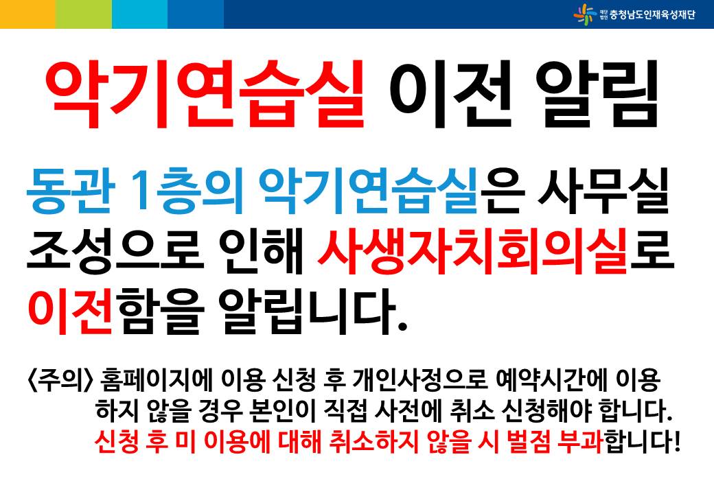 악기연습실 이용에 착오없기를 바라며, 불편사항 등 문의사항은