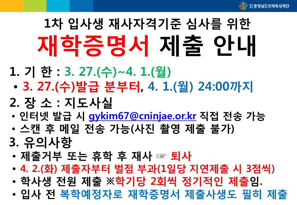 확인하기 위한 정기적인 재학증명서 제출입니다.