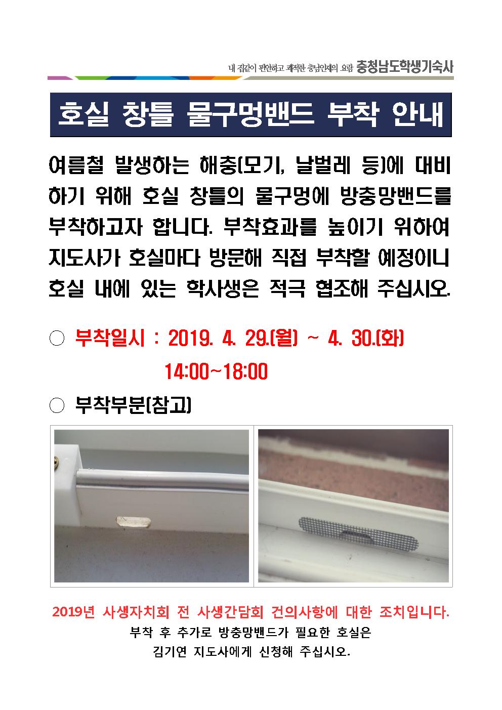 (알림) 호실 창틀 물구멍밴드 부착 안내
