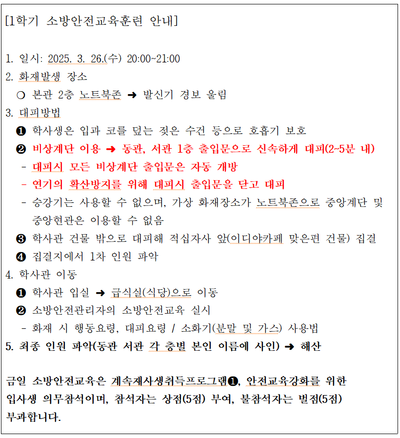 [알림] 1학기 소방안전교육훈련 안내