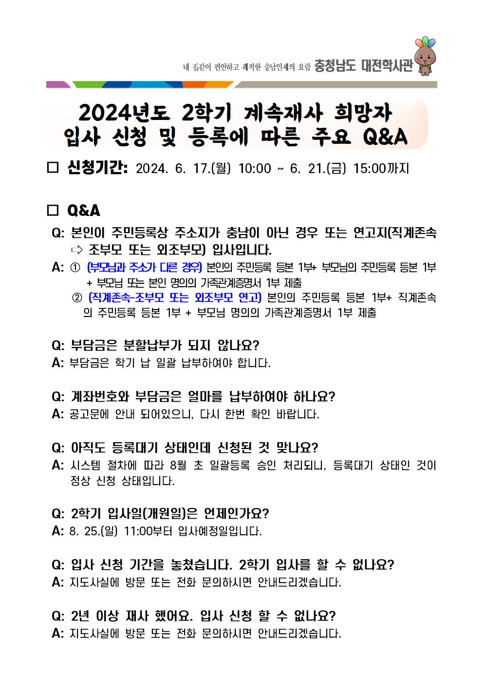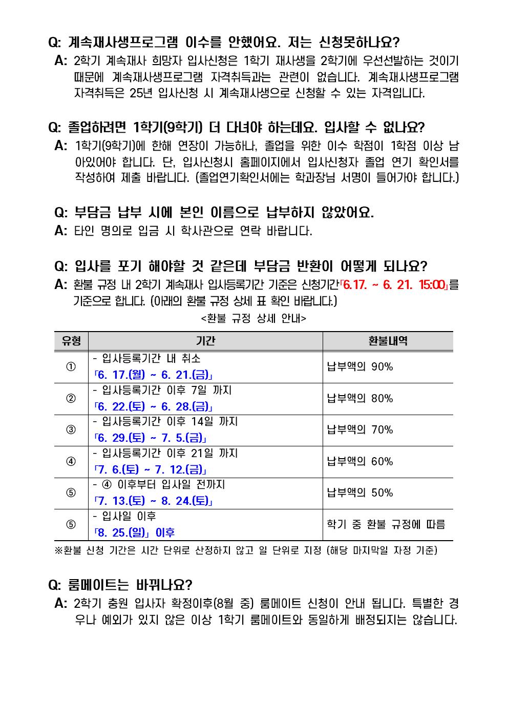 [알림] 2학기 계속재사희망자 입사신청 주요 Q&A