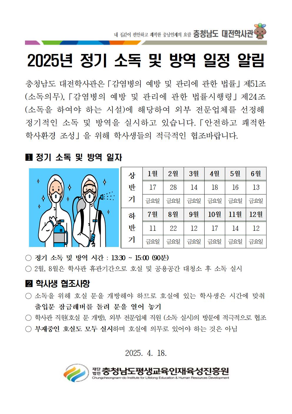 [알림] 2025년 정기 소독 및 방역 일정 알림