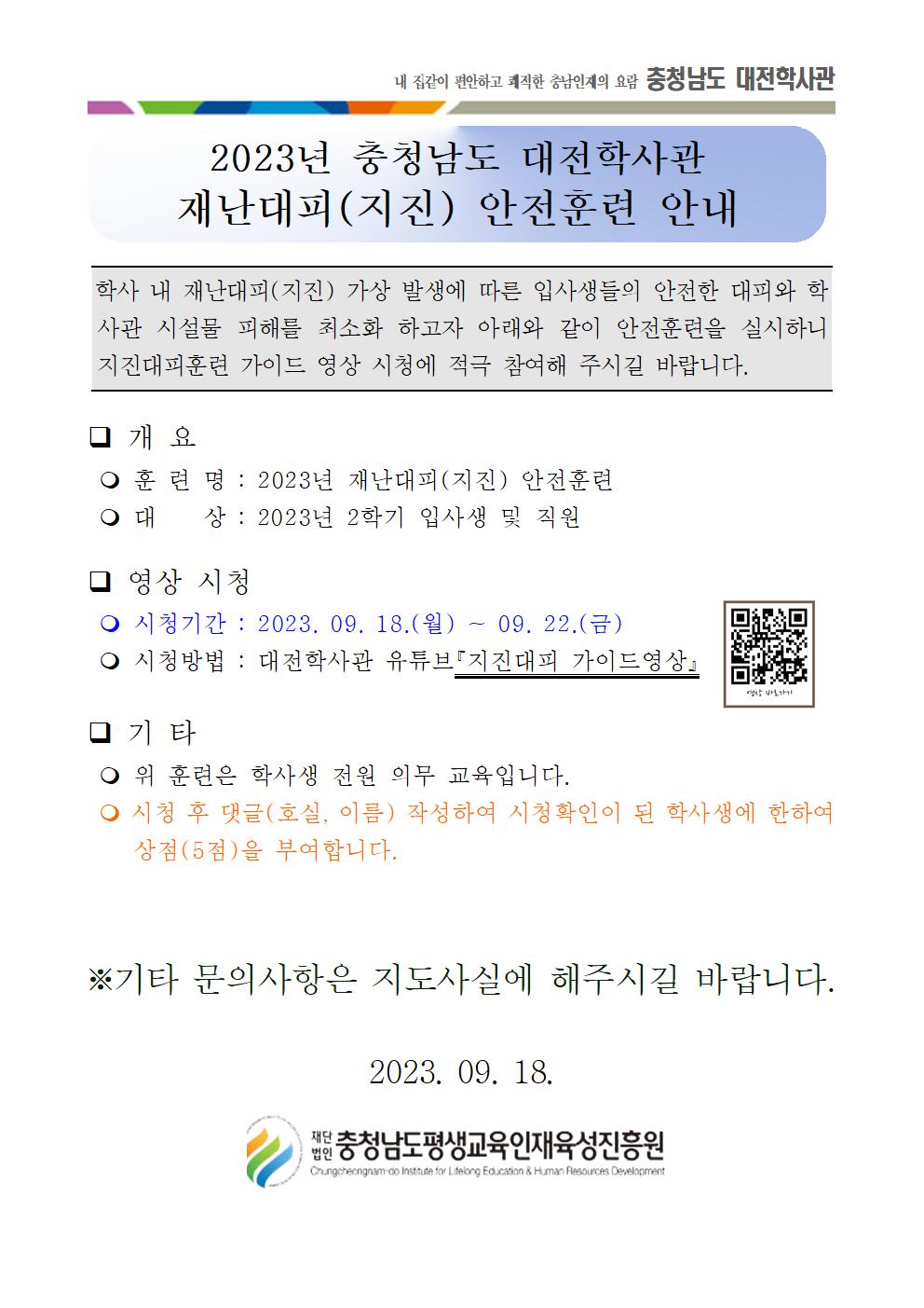 2023년 충청남도 대전학사관 재난대피(지진) 안전훈련 안내001.jpg