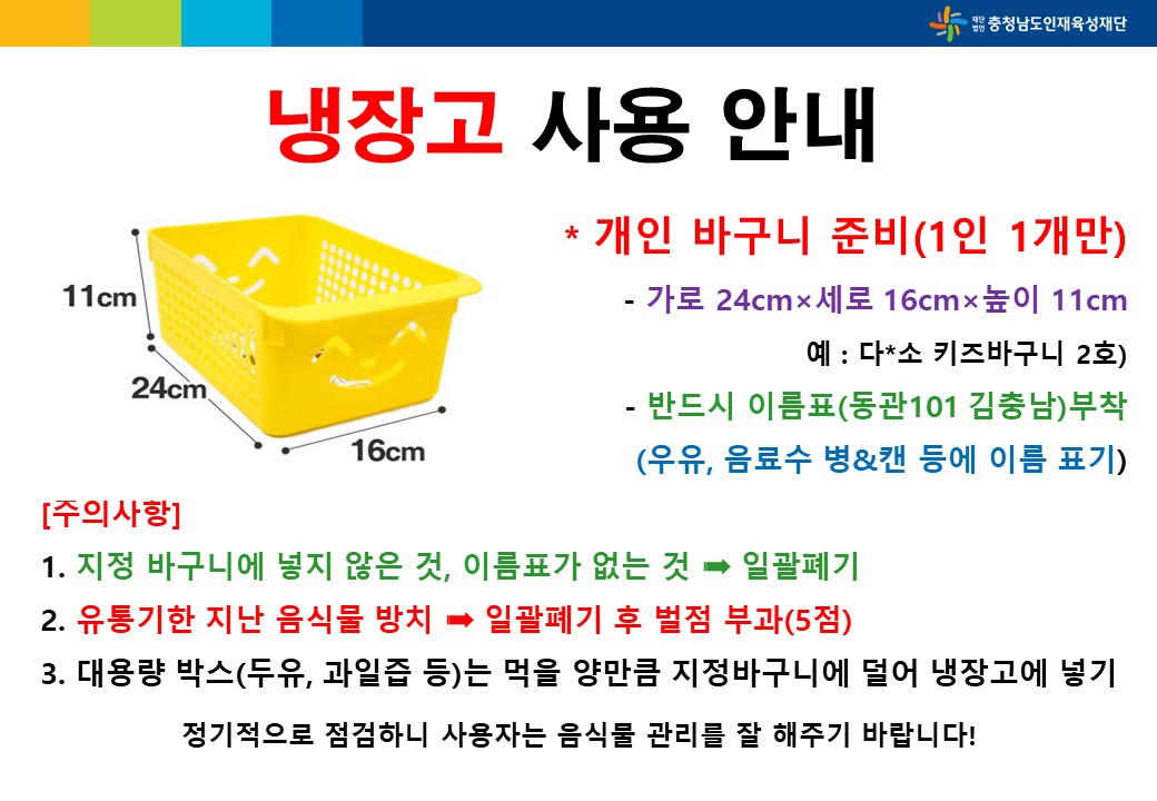 [알림] 공용냉장고 사용안내(개인바구니 규격 알림)