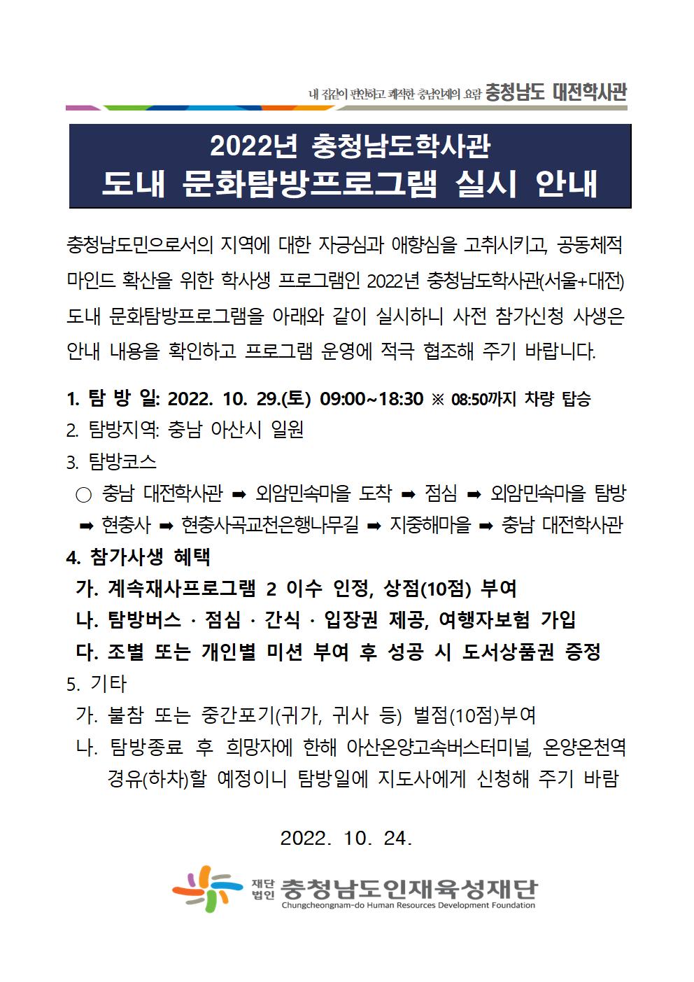 2022년 충청남도 대전학사관 도내 문화탐방프로그램 실시 안내001.jpg