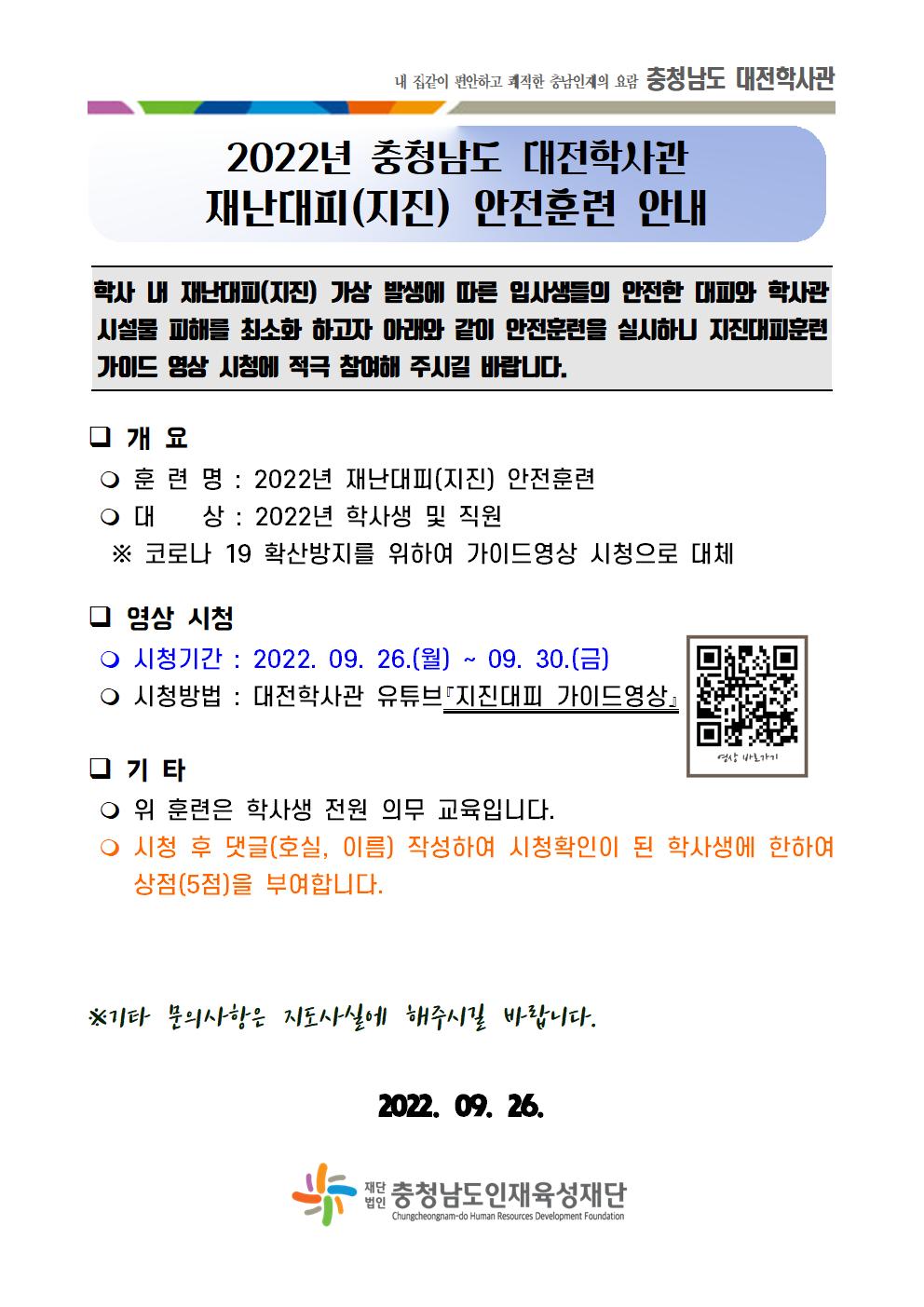 2022년 충청남도 대전학사관 재난대피 안전훈련 안내001.jpg