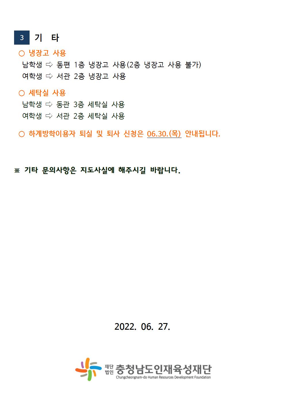 [알림] 2022년 충청남도 대전학사관 하계방학 이용자 생활안내