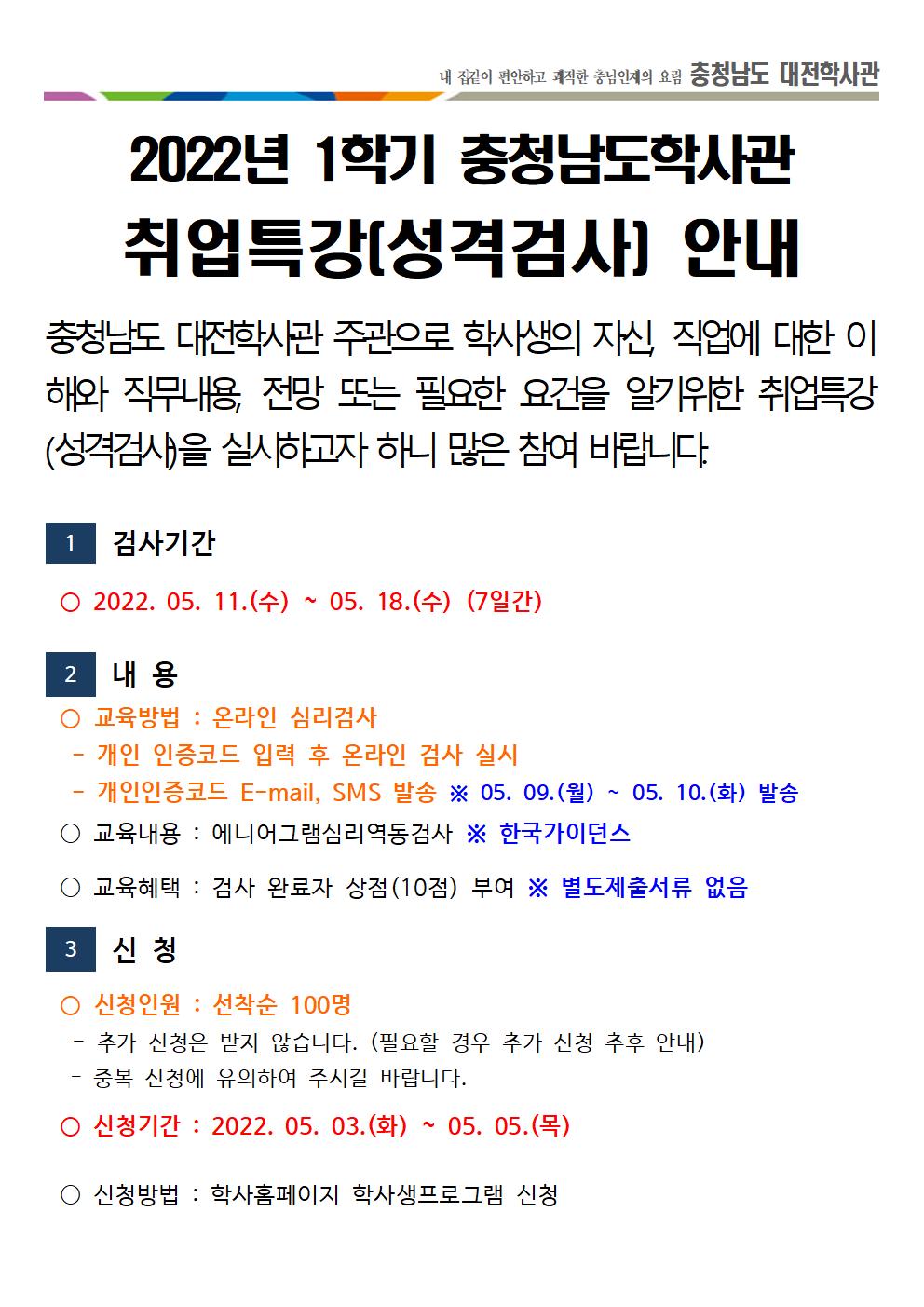[알림] 2022년 충청남도 대전학사관 1학기 취업특강 안내