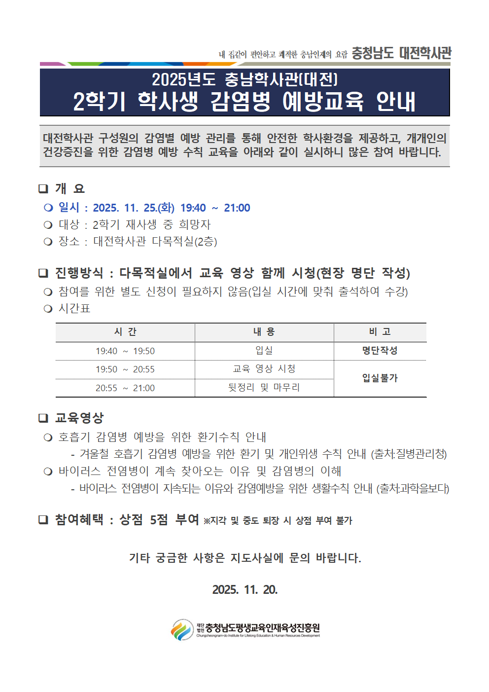2025년도 충남학사관(대전) 2학기 학사생 감염병 예방 교육 안내001.png