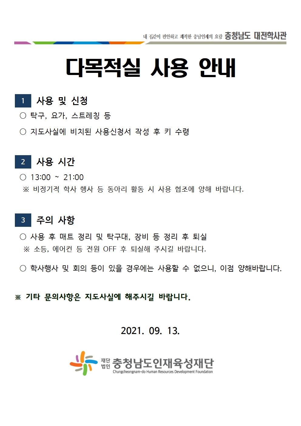 [알림] 충청남도 대전학사관 다목적실 사용 안내