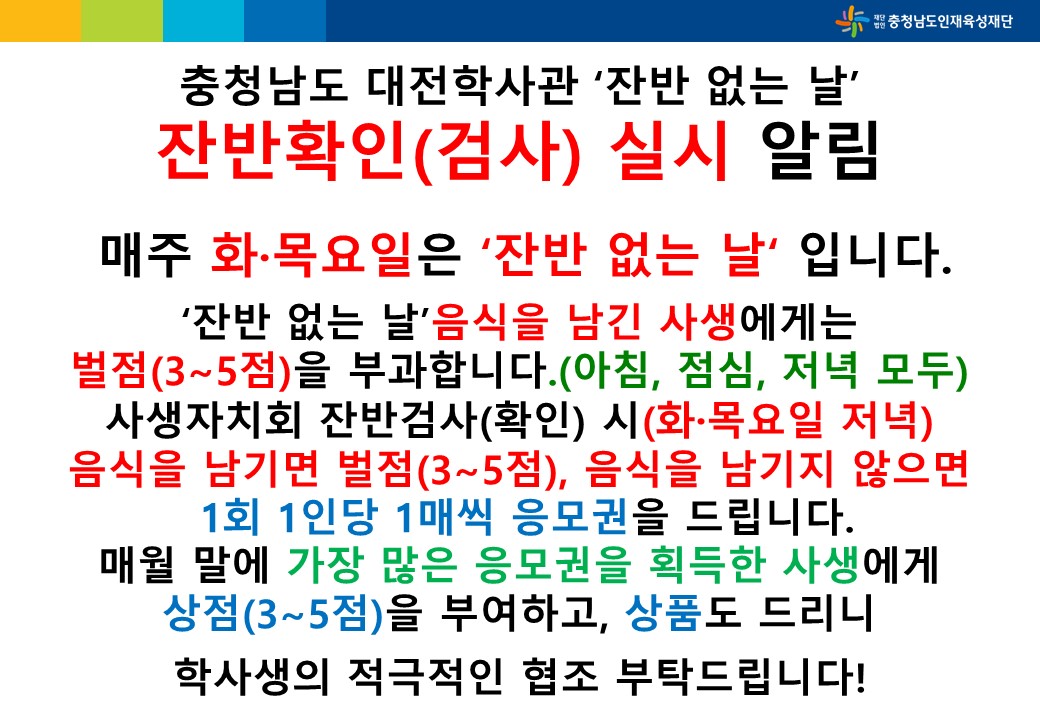 화, 목요일 '잔반없는 날' 관련하여 잔반확인(검사) 내용을 다시 알립니다.