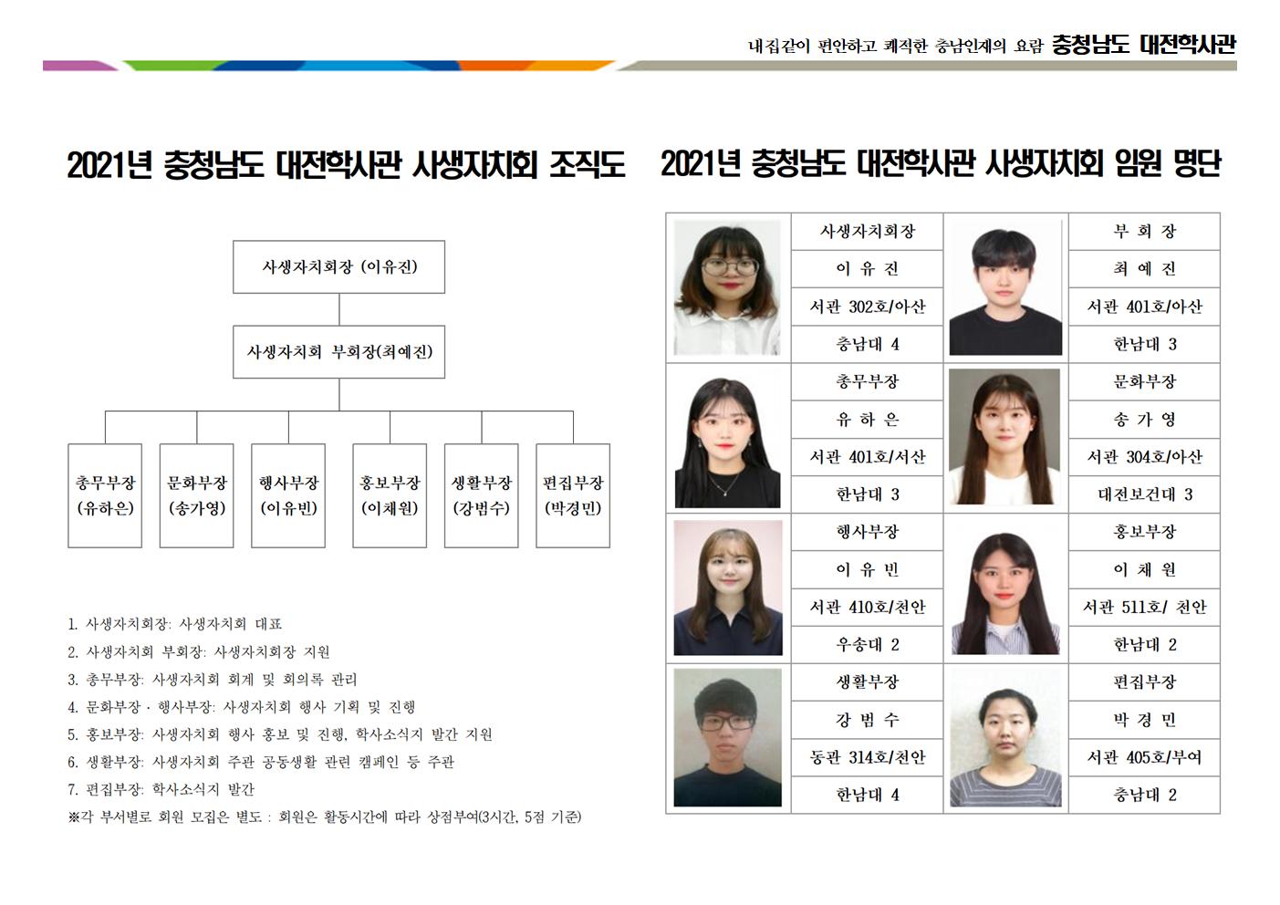 [알림] 2021년 충청남도 대전학사관 사생자치회 조직도 및 임원명단
