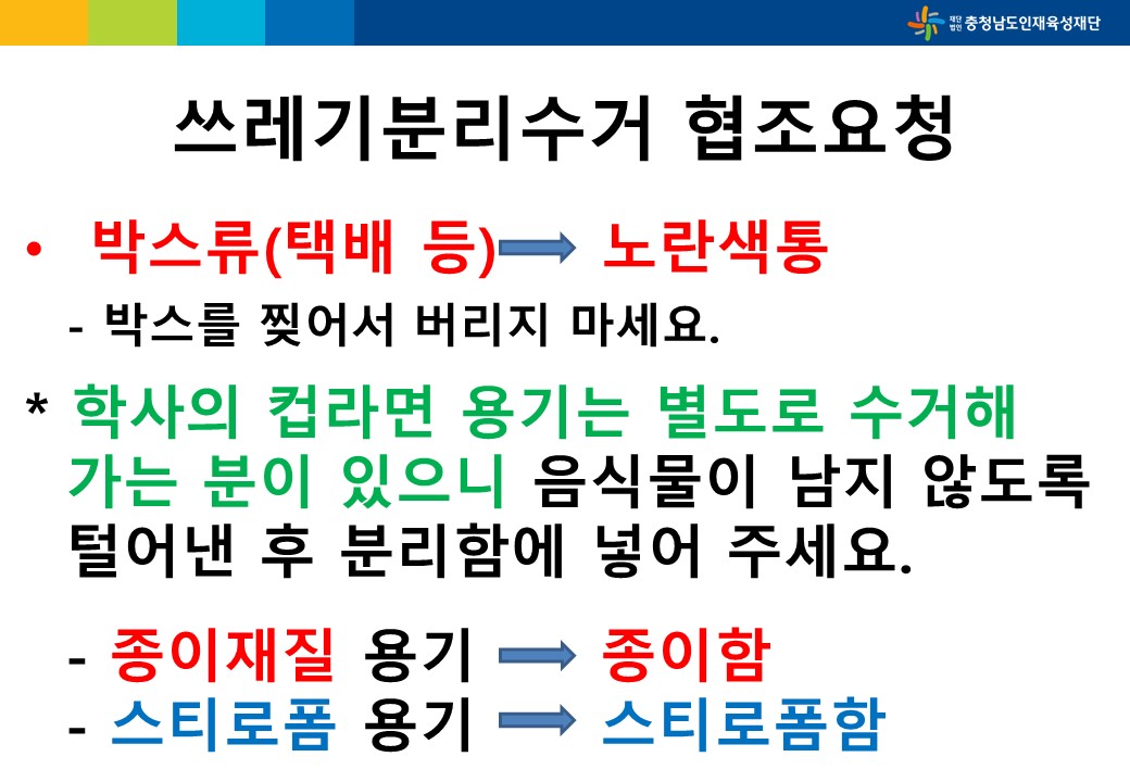 쓰레기분리수거에 힘써주시기 바랍니다.